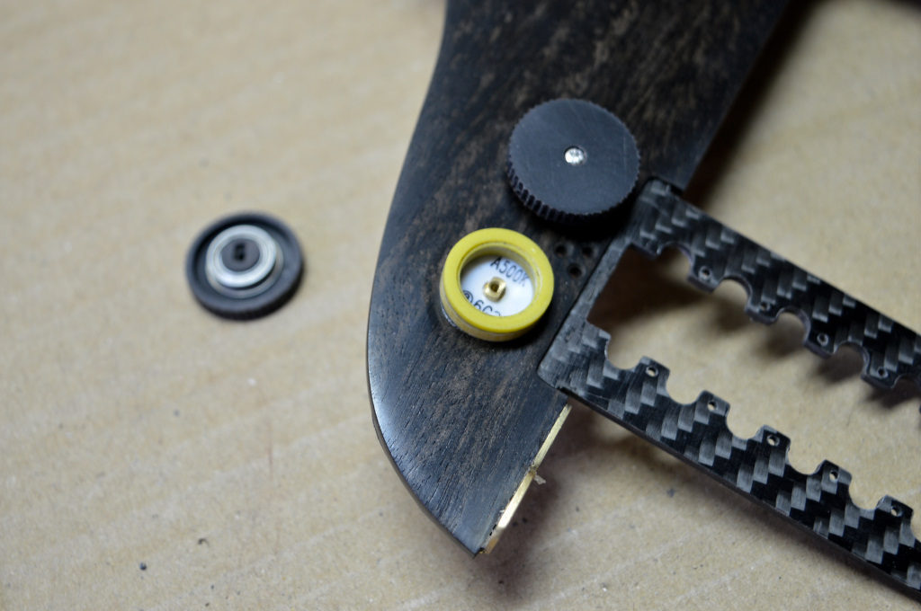 The covers are made of ebony, reinforced with FR4 inside. This design permits to use thin wooden parts, tough enough for their job:
